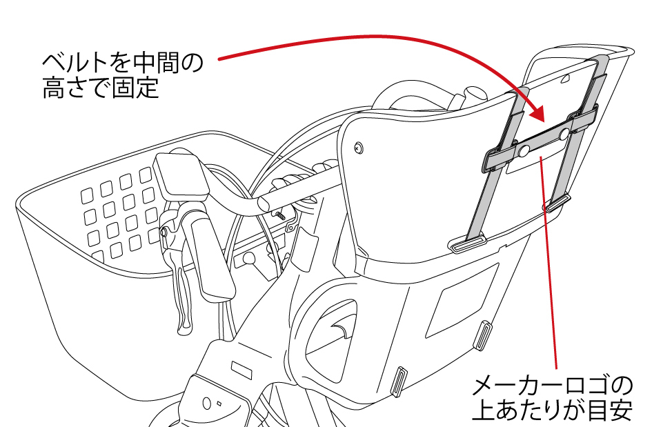 チャイルドシートのヘッドレスト等に「アジャスター付きベルトG」2本を巻付けます。