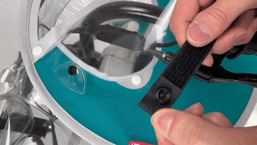 組立済みのレインカバーを、チャイルドシートへ装着します。