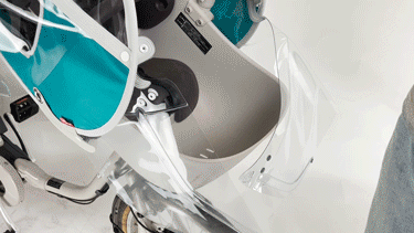 左右の足元カバー上部2か所と下部1か所のボタン同士を結合します。