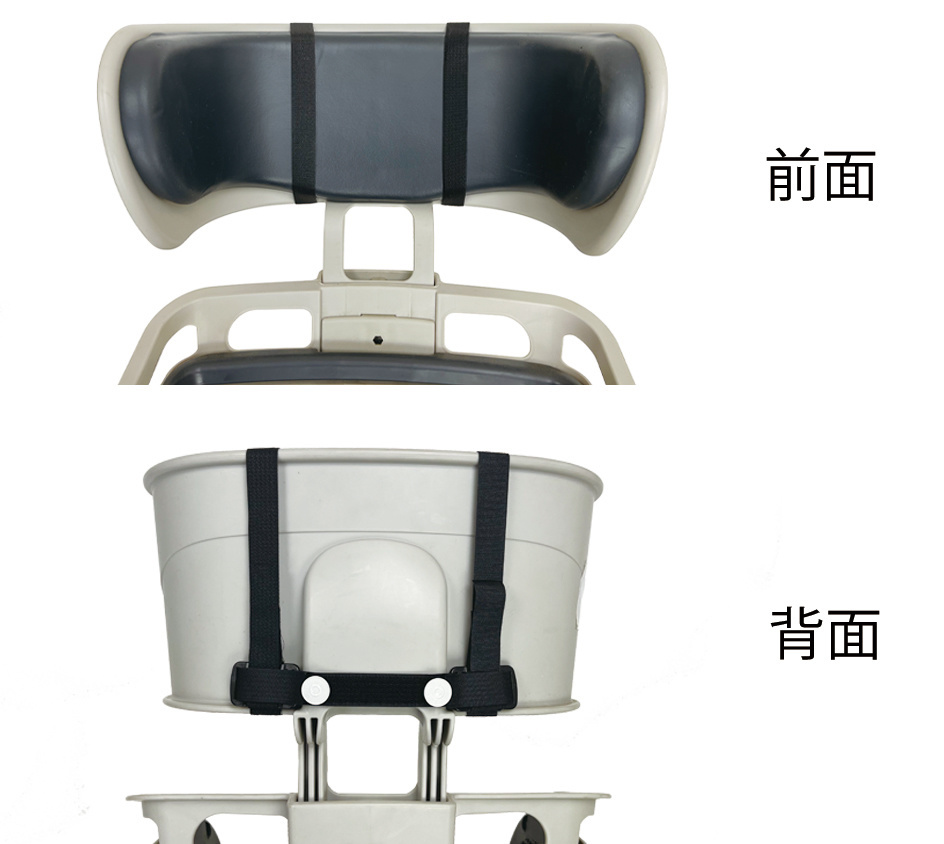 チャイルドシートのヘッドレスト等に「アジャスター付きベルトG」2本を巻付けます。