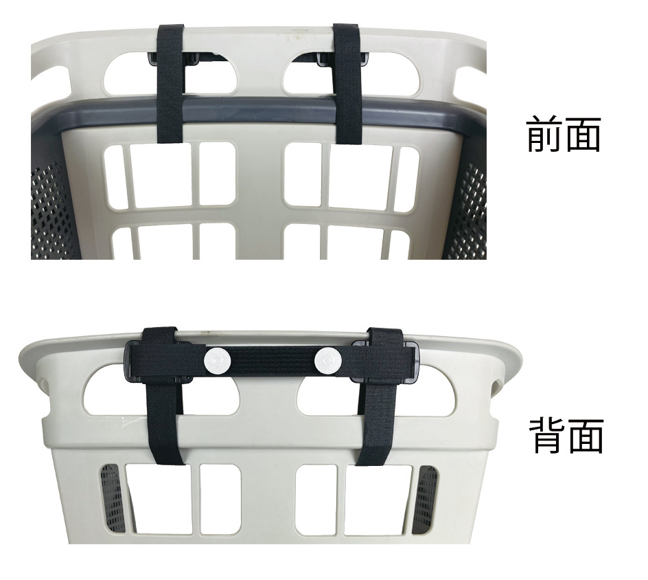 「トリプルループベルトT」と、「ボタン付きベルトS」2本を合体して、自転車フレーム(またはサドルポスト)に巻き付けます。