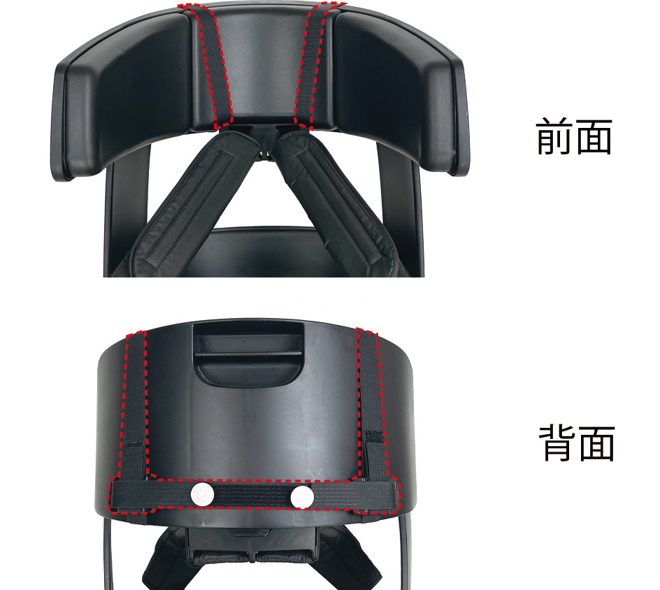 「26インチ自転車」や「非電動自転車」は、サドルとチャイルドシートの距離が近いため、合体したベルトは「自転車のサドル下」に巻付けて下さい。