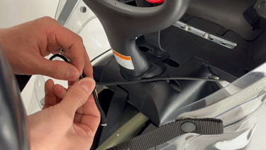 座面のシートクッションを一度取り外し、「パラコードK」をシート下からシートの持ち手ハンドルにかけて前方へ通します。