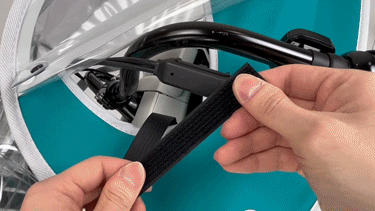 組立済みのレインカバーを、チャイルドシートへ装着します。