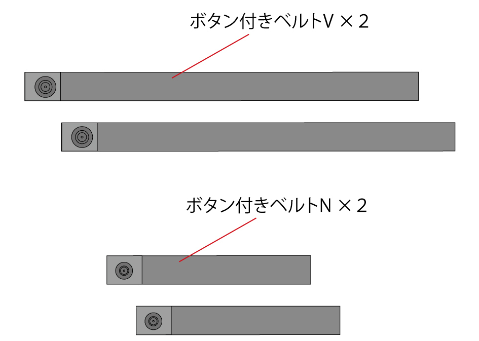 「ボタン付きベルトV」のボタンを、サイドパネル中央のボタンに裏面から固定します。