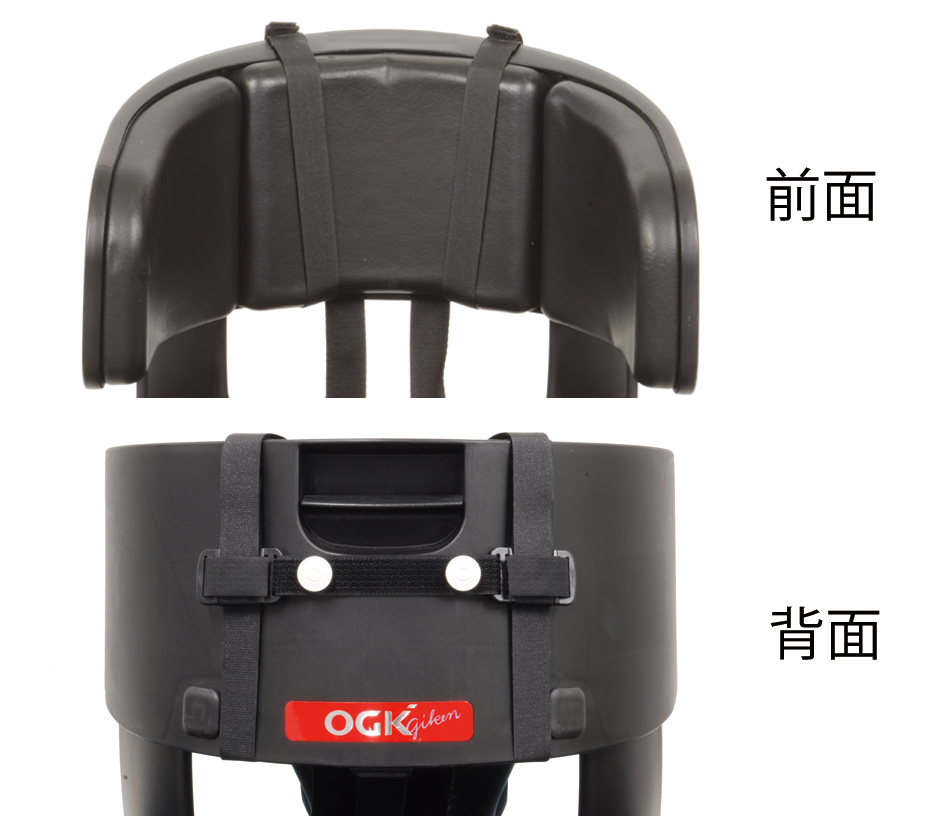 チャイルドシートのヘッドレスト等に「アジャスター付きベルトG」2本を巻付けます。