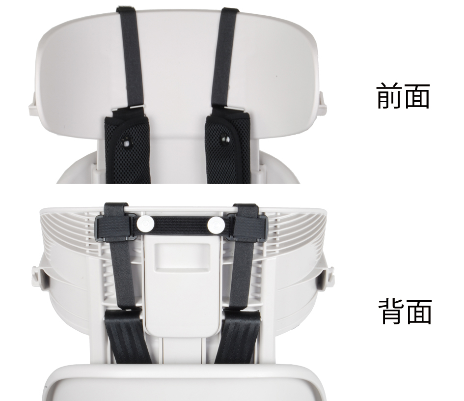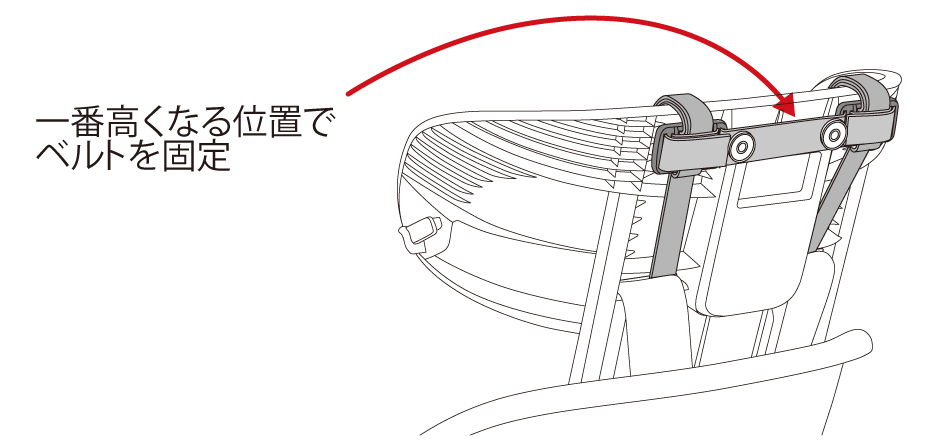 チャイルドシートのヘッドレスト等に「アジャスター付きベルトG」2本を巻付けます。