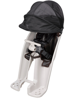 組立済みのレインカバーを、チャイルドシートへ装着します。