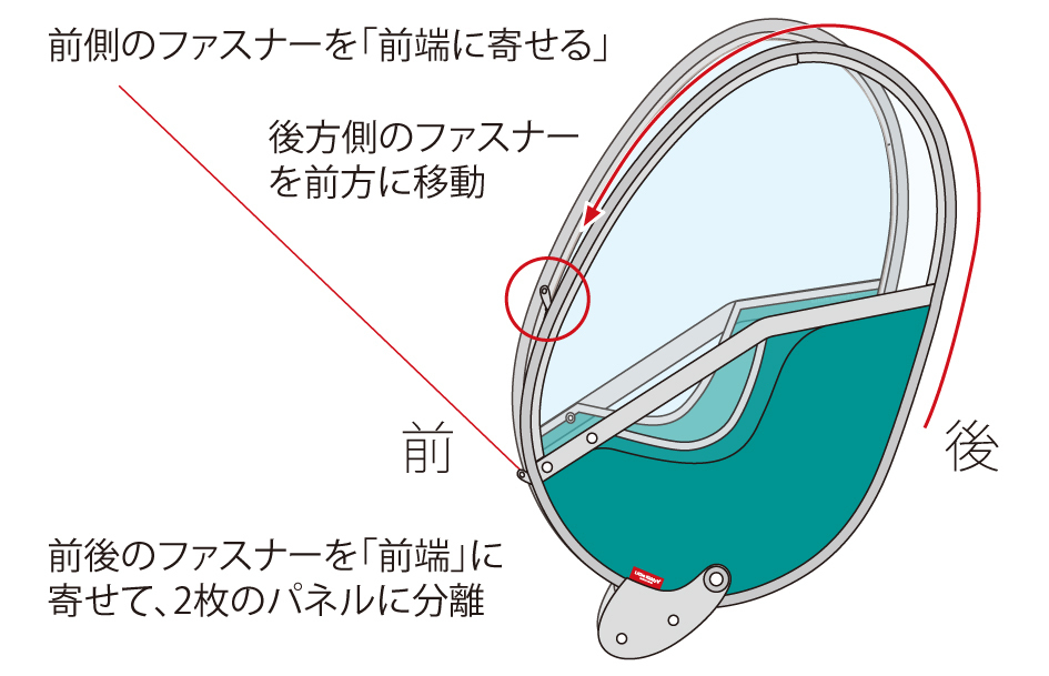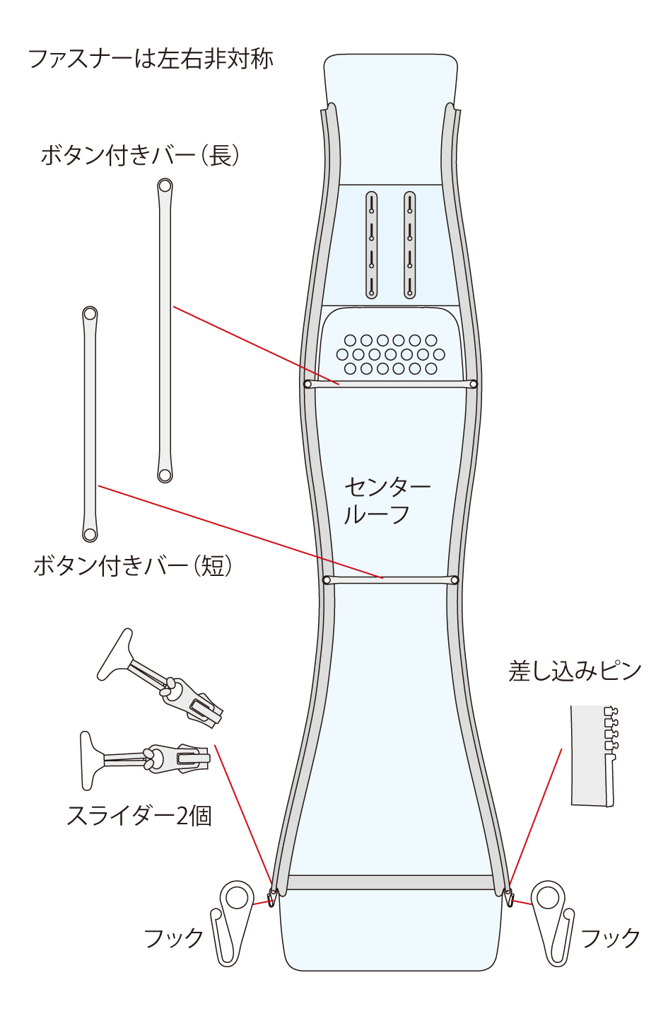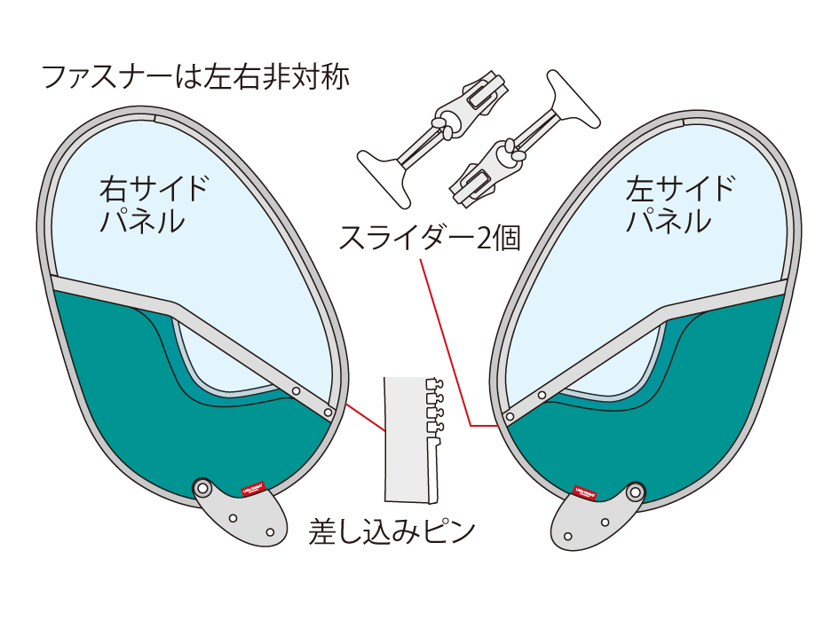 組み立て前には、左右のサイドパネルを必ずファスナー分離して下さい。
