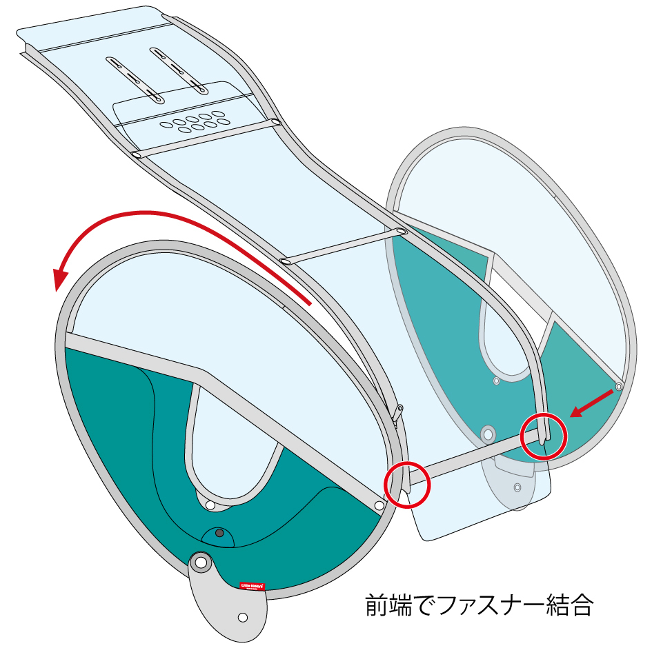 ファスナー結合方法の詳細は「3. 両側オープンファスナーの使用方法」をご参照下さい。