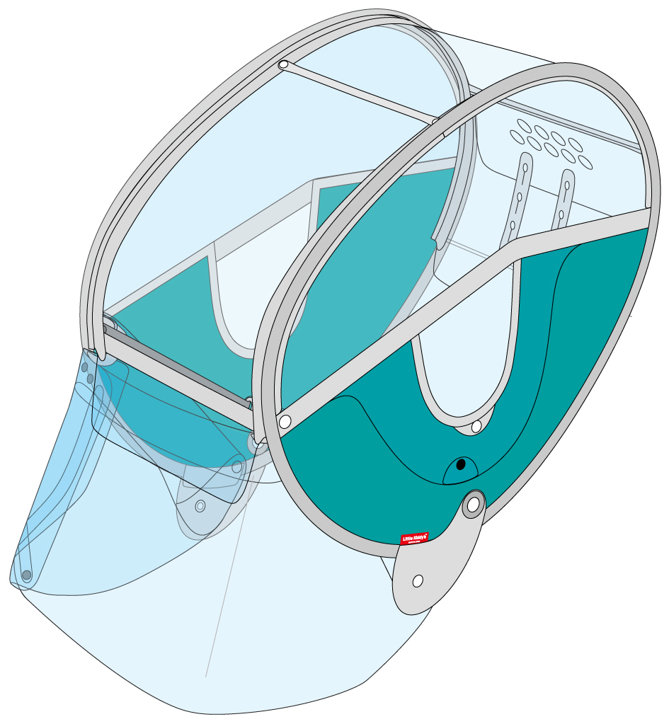 組立済みのレインカバーを、チャイルドシートへ装着します。