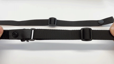ボタン付きベルトHをアジャスターに通して取付けます。