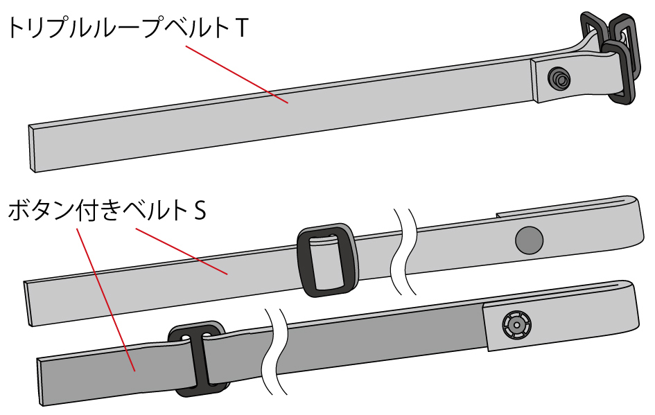 「トリプルループベルトT」と、「ボタン付きベルトS」2本を使用します。